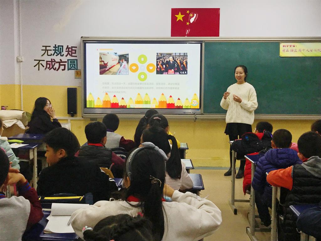 12月4日下午,学院普法志愿者在于晋老师的带领下来到福林小学进行宪法知识的宣讲,让同学们从小养成“尊崇宪法、学习宪法、遵守宪法、维护宪法、运用宪法”的良好习惯。