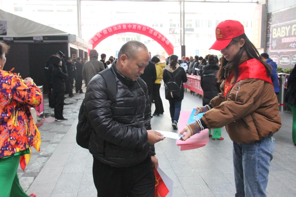 12月4日上午,学院普法宣传志愿者来到丽达广场,与崂山区司法局一起发放普法宣传单页,宣讲宪法知识。